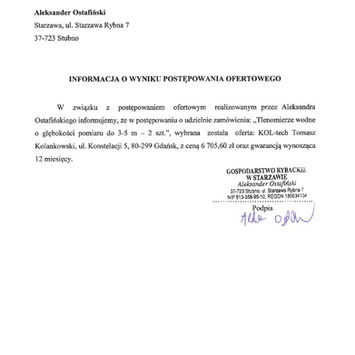 Starzawa Rybna , 26.08.2020 Tlenomierze wodne o głębokości pomiaru do 3-5 m – 2 szt.
