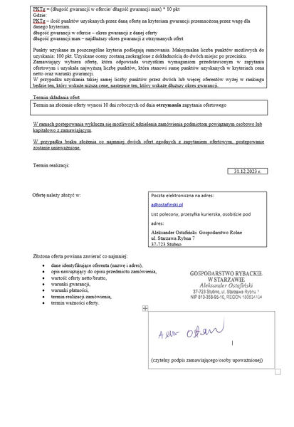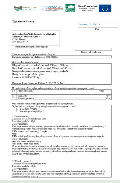 Zaproszenie do składania ofert - przyczepa transportowa o ładowności 2000-2200 kg , Starzawa 11.12.2023r.